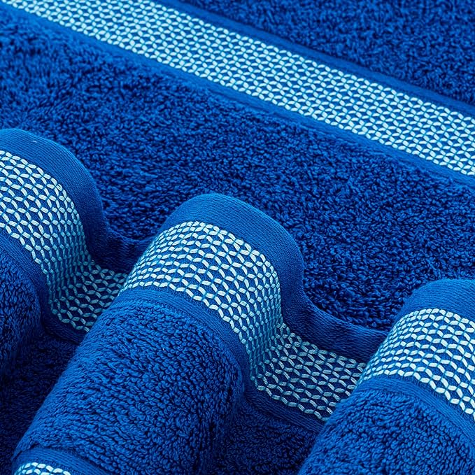 These 6 pieces Premium Luxurious Towel set provides a complete package of two washcloths, two hand towels and two bath towels to meet all your daily needs. It gives plush and fluffy feel when drying your hands and face and refreshing feel after shower. Generously sized 12 x 12 Inches Washcloths, 16 x 28 Inches hand towel, 27 x 55 Inches bath towels provide ample coverage, extra absorbency, and practical for quick drying. Made of 100% cotton fabric and terry in nature, these towels possess breathable characteristics which make them perfect for your body, face and hands. Professionally hemmed edges are carefully crafted to enhance towel’s quality and durability. Towels are highly absorbent and will remain soft after multiple wash and dry cycles. Select your favourites out of TWELVE beautiful colours combinations to go with the décor of your home, spa, or gym. Decor your bathroom with a day in contrast colour and the other days matching colour.These towels can also make a perfect housewarming or wedding gift.
